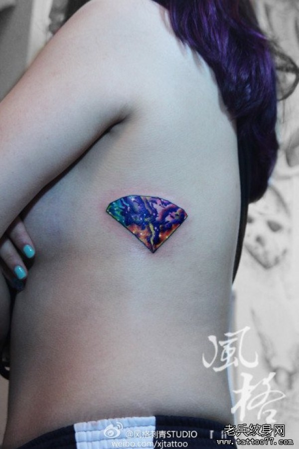 女生侧胸漂亮潮流的彩色星空钻石纹身图案_女生纹身图案大全_纹身图吧