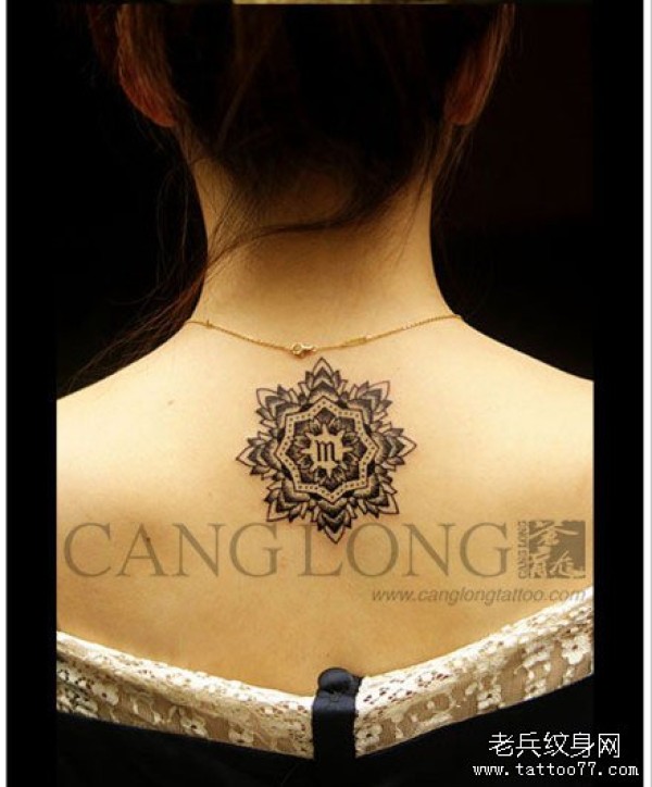 女生后背漂亮精美的黑灰雪花纹身图案_女生纹身图案大全_纹身图吧