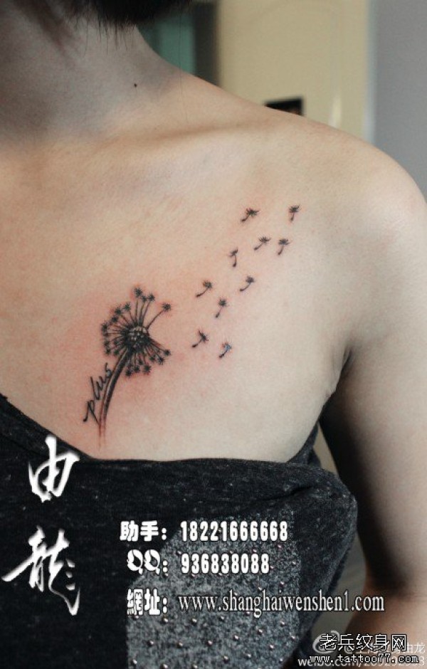 女生胸前唯美潮流的蒲公英纹身图案_女生纹身图案大全_纹身图吧
