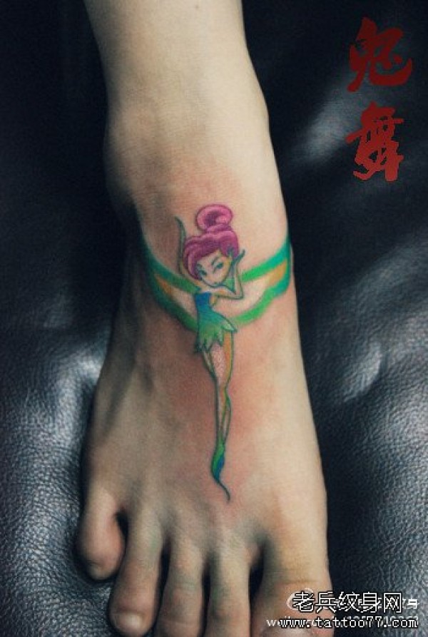 女生脚背时尚潮流的小精灵纹身图案_女生纹身图案大全_纹身图吧