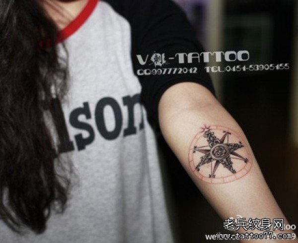 女生手臂潮流漂亮的指南针纹身图案_女生纹身图案大全_纹身图吧