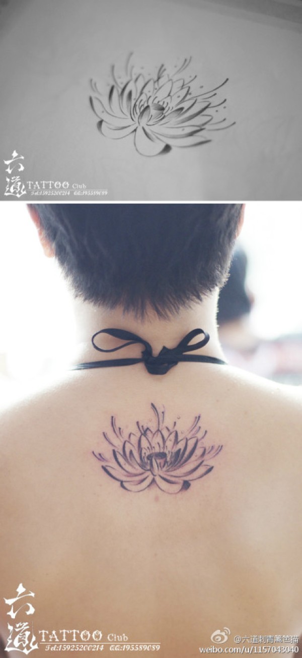 女生后背唯美潮流的一款黑灰莲花纹身图案_女生纹身图案大全_纹身图吧