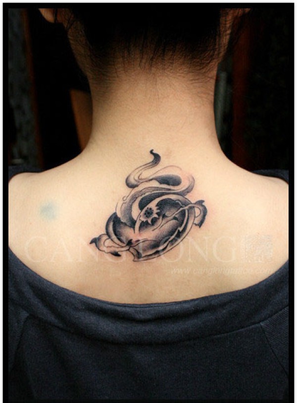 女生后背潮流漂亮的黑灰爱心纹身图案_女生纹身图案大全_纹身图吧