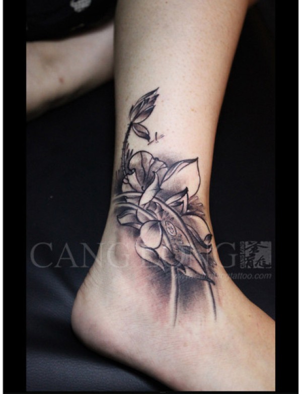 女生脚踝处唯美潮流的莲花纹身图案_女生纹身图案大全_纹身图吧