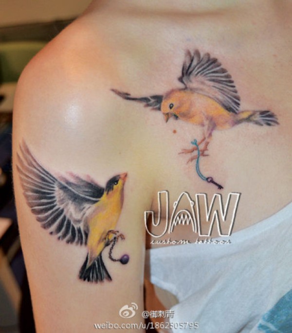女生手臂与胸前潮流好看的小鸟纹身图案_女生纹身图案大全_纹身图吧