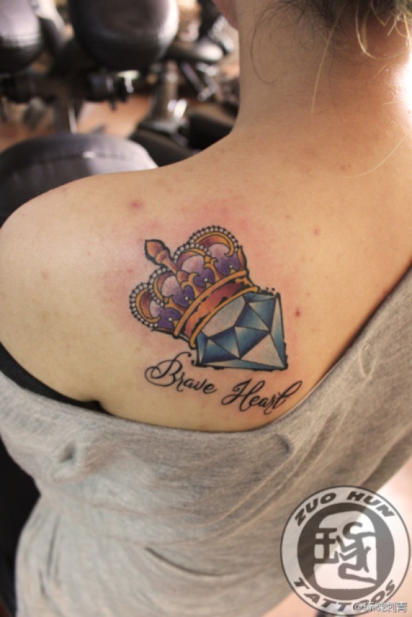 女生后背潮流精美的彩色皇冠钻石纹身图案_女生纹身图案大全_纹身图吧