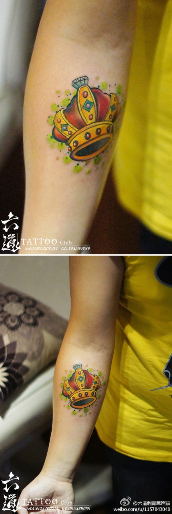 女生手臂漂亮潮流的彩色皇冠纹身图案_女生纹身图案大全_纹身图吧