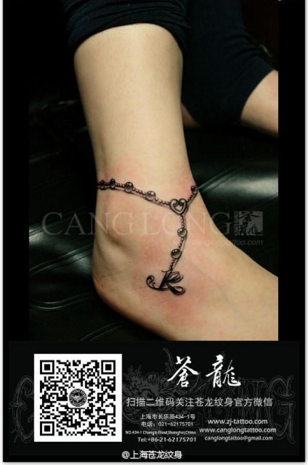 女生脚腕漂亮时尚的脚链纹身图案_女生纹身图案大全_纹身图吧