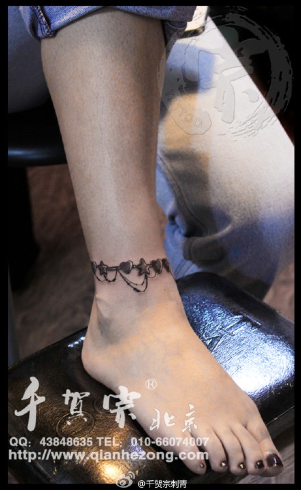 女生脚腕小巧的爱心五角星脚链纹身图案_女生纹身图案大全_纹身图吧