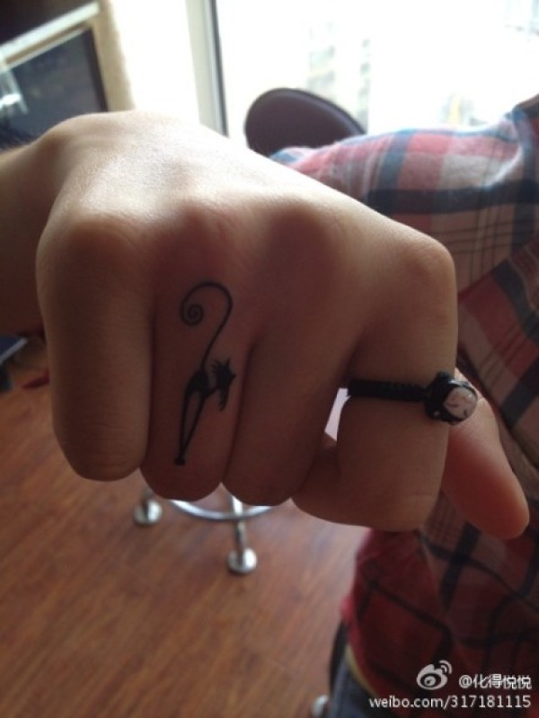女生手指小巧流行的猫咪纹身图案_女生纹身图案大全_纹身图吧
