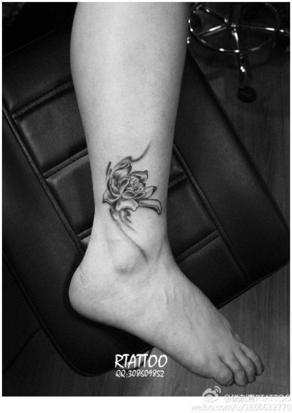 女生小腿唯美的黑灰莲花纹身图案_女生纹身图案大全_纹身图吧