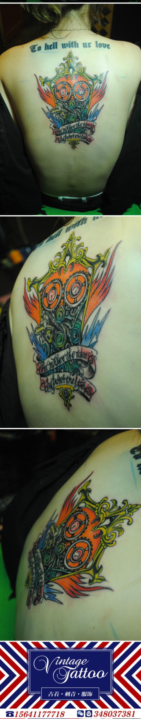 女生后背经典超帅的机械猫头鹰纹身图案_女生纹身图案大全_纹身图吧