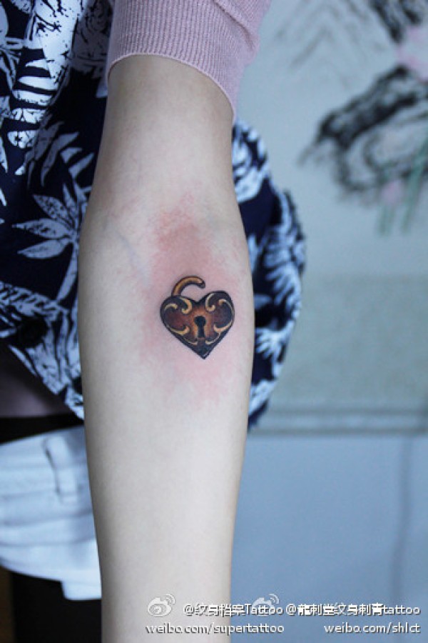 女生手臂小巧潮流的爱心锁纹身图案_女生纹身图案大全_纹身图吧