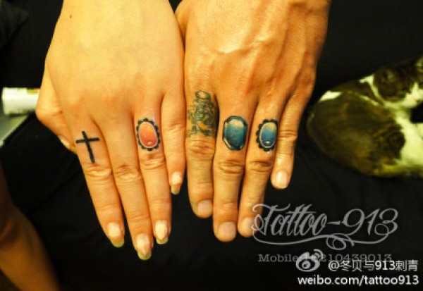 女生手指小巧潮流的彩色宝石纹身图案_女生纹身图案大全_纹身图吧