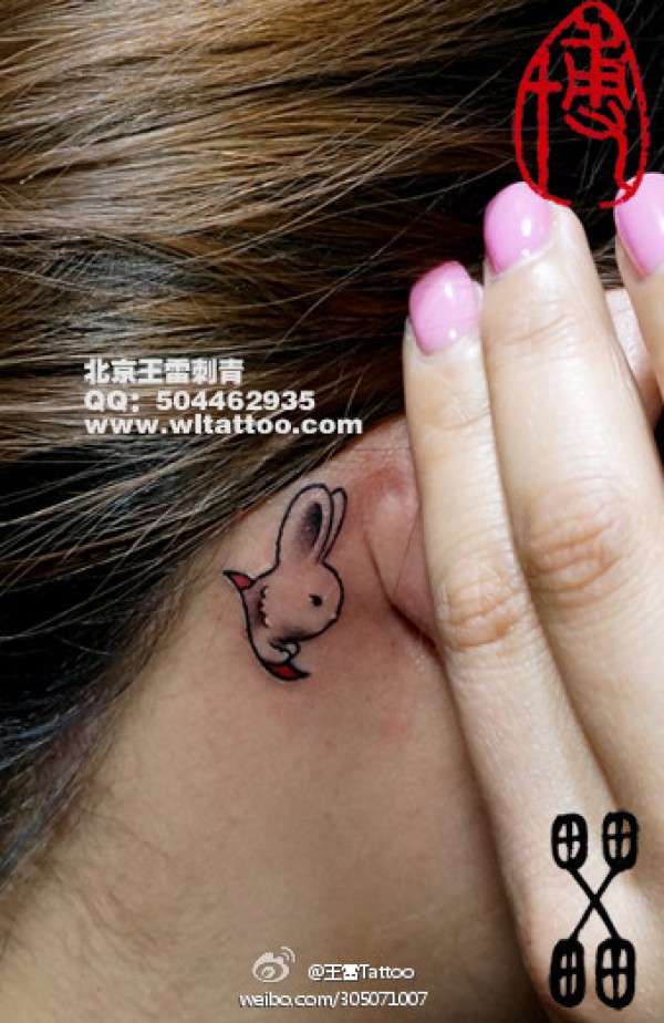 女生耳部小巧可爱的小兔子纹身图案_女生纹身图案大全_纹身图吧