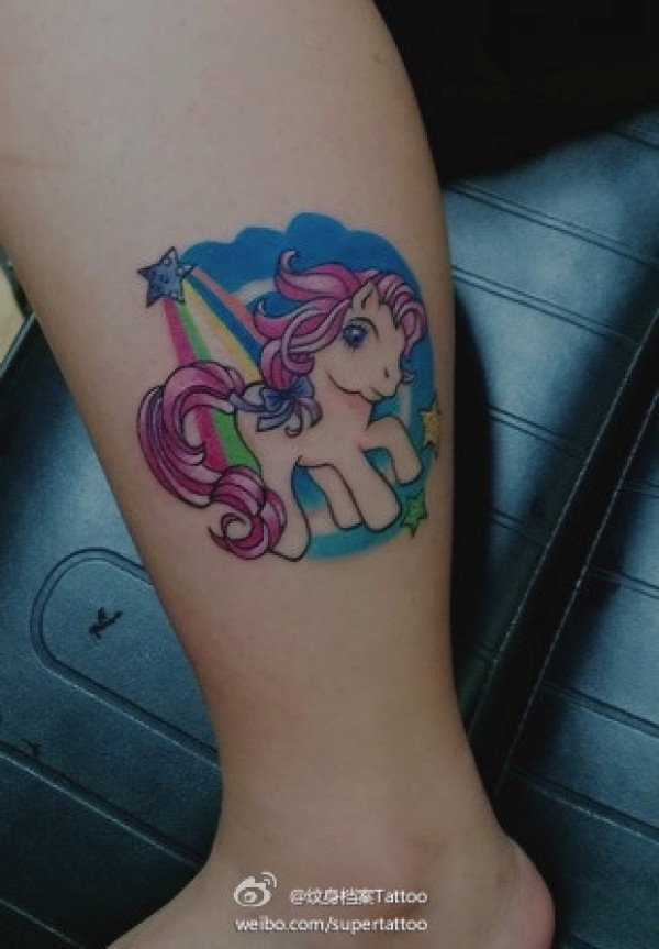 女生腿部经典时尚的小马纹身图案_女生纹身图案大全_纹身图吧