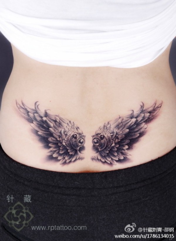 女生腰部唯美写实的翅膀纹身图案_女生纹身图案大全_纹身图吧