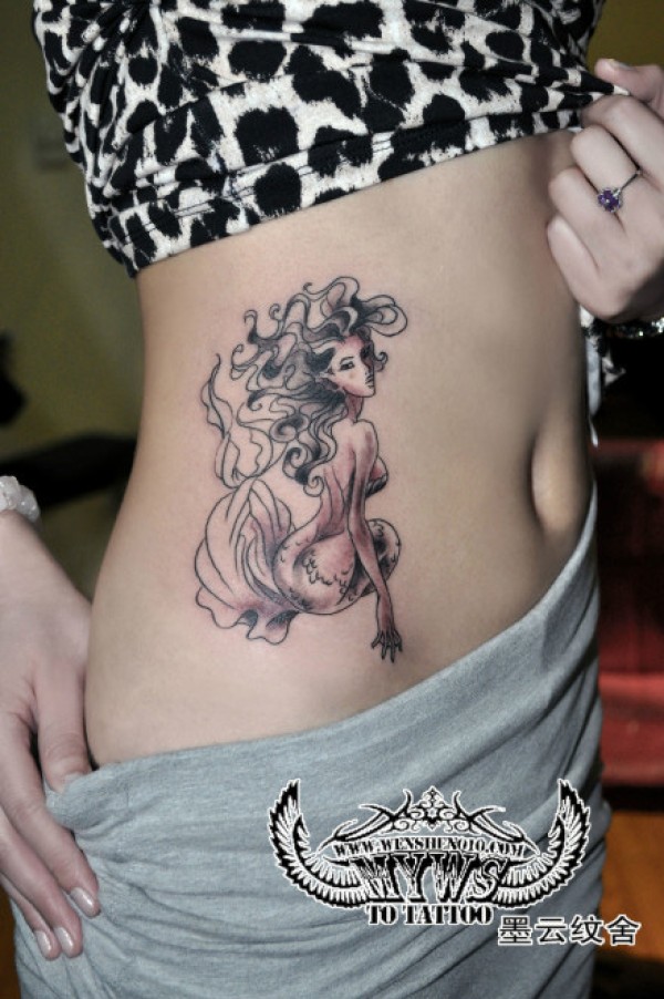 美女腹部唯美潮流的美人鱼纹身图案_女生纹身图案大全_纹身图吧