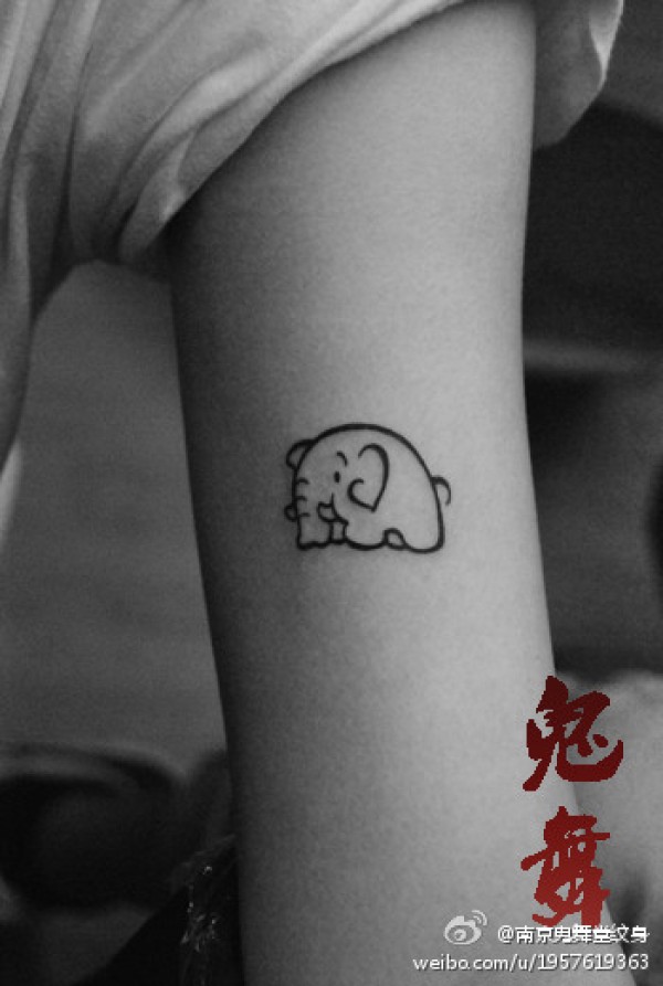 女生手臂内侧可爱的小象纹身图案_女生纹身图案大全_纹身图吧