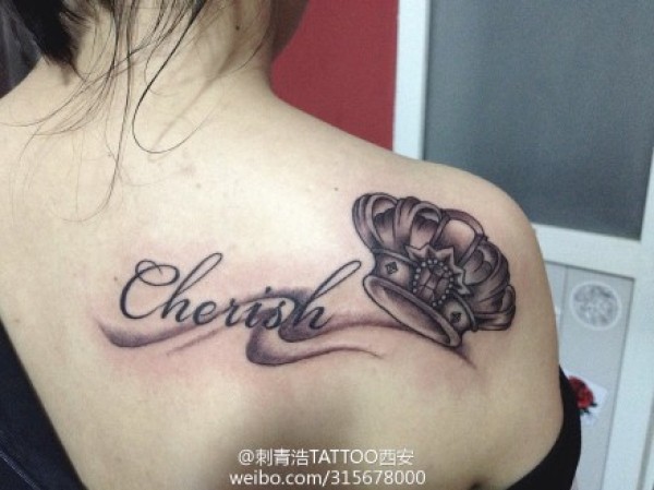 女生后肩背潮流经典的皇冠纹身图案_女生纹身图案大全_纹身图吧