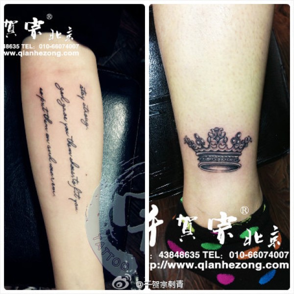 女生腿部经典的黑灰皇冠纹身图案_女生纹身图案大全_纹身图吧