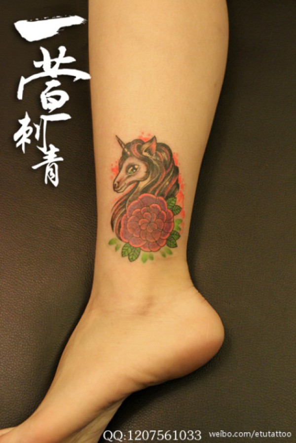 女生脚踝处唯美潮流的独角兽纹身图案_女生纹身图案大全_纹身图吧