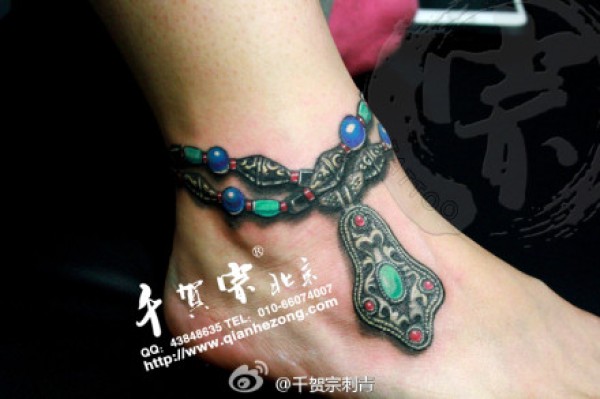 女生脚腕潮流精美的脚链纹身图案_女生纹身图案大全_纹身图吧