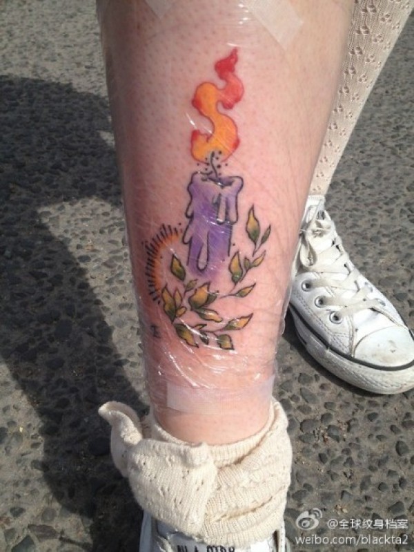 女生腿部一款时尚经典的蜡烛纹身图案_女生纹身图案大全_纹身图吧