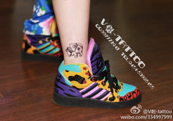 女生腿部可爱很萌的小象纹身图案_女生纹身图案大全_纹身图吧