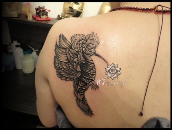 女生后背潮流时尚的蜂鸟纹身图案_女生纹身图案大全_纹身图吧