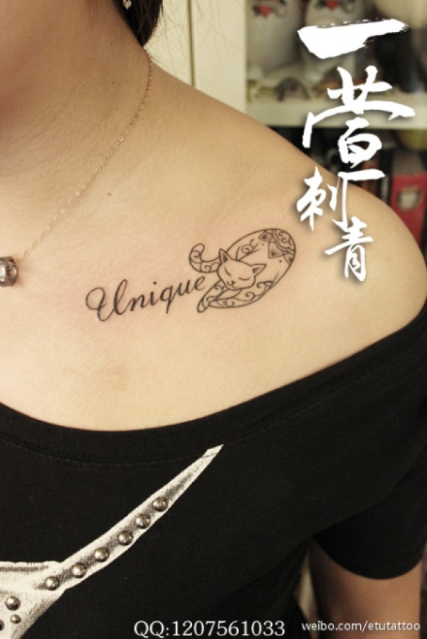 女生锁骨处小巧潮流的猫咪纹身图案_女生纹身图案大全_纹身图吧