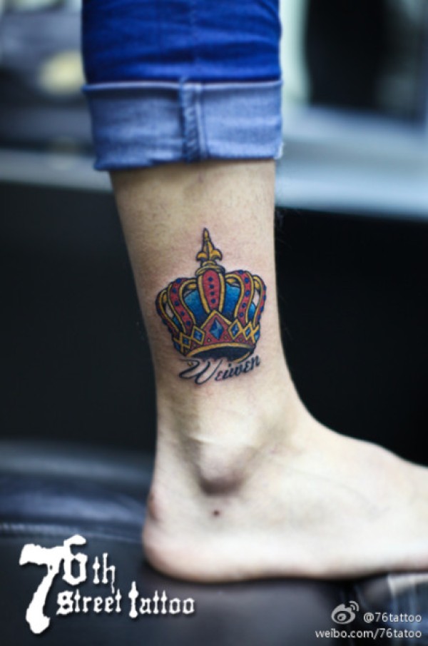 女生腿部潮流时尚的皇冠纹身图案_女生纹身图案大全_纹身图吧