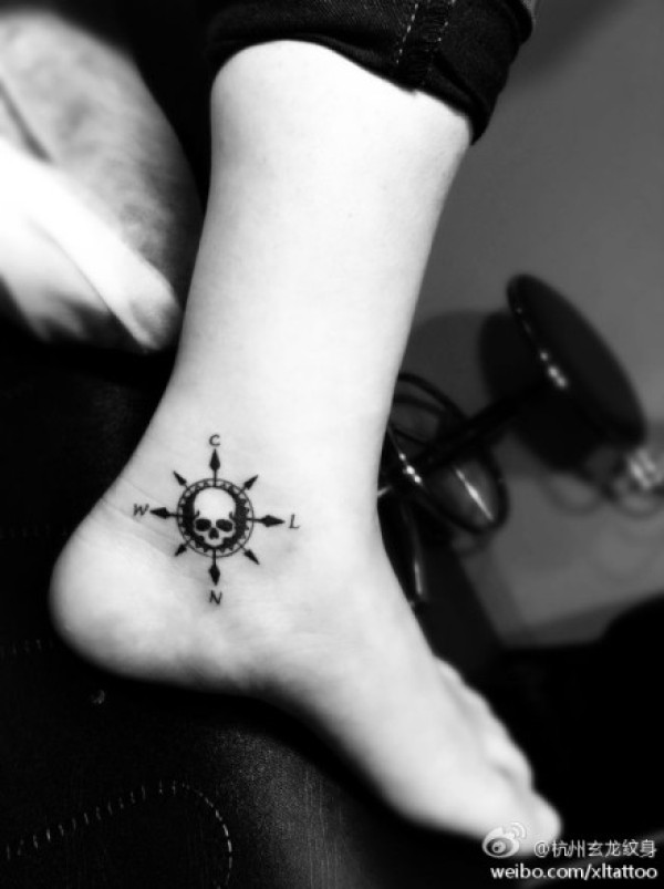 女生脚跟处小巧的指南针纹身图案_女生纹身图案大全_纹身图吧
