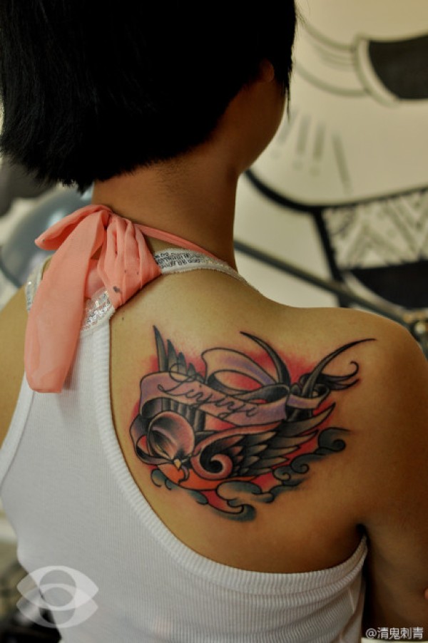 女生肩膀时尚流行的小燕子纹身图案_女生纹身图案大全_纹身图吧