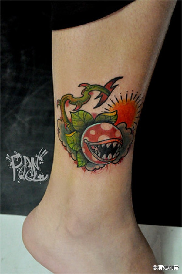 女生腿部一款经典的食人花纹身图案_女生纹身图案大全_纹身图吧