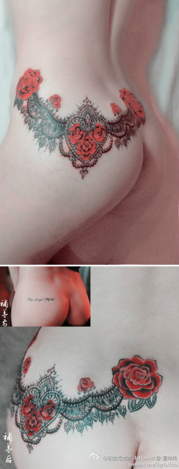 美女臀部潮流精美的蕾丝纹身图案_女生纹身图案大全_纹身图吧