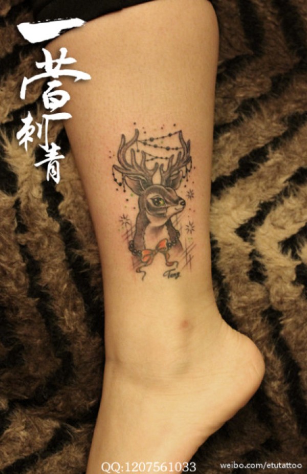 女生腿部可爱的小鹿纹身图案_女生纹身图案大全_纹身图吧