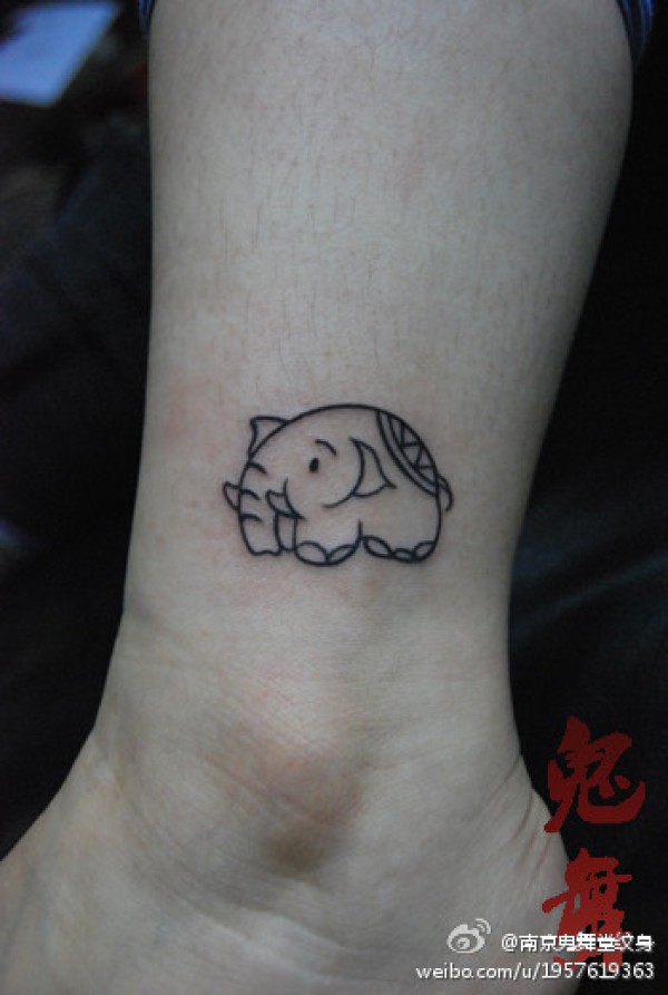 女生腿部可爱的线条小象纹身图案_女生纹身图案大全_纹身图吧