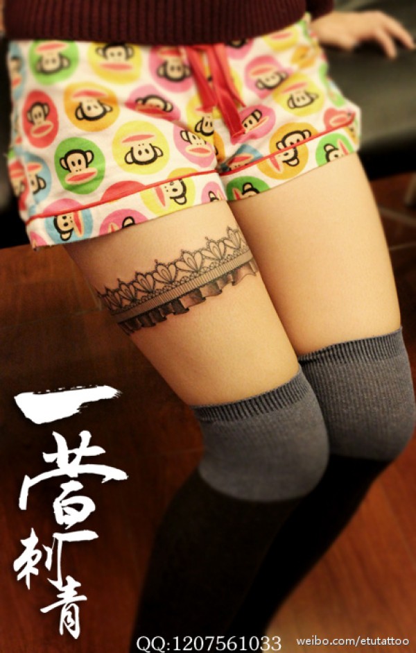 女生腿部潮流性感的蕾丝纹身图案_女生纹身图案大全_纹身图吧