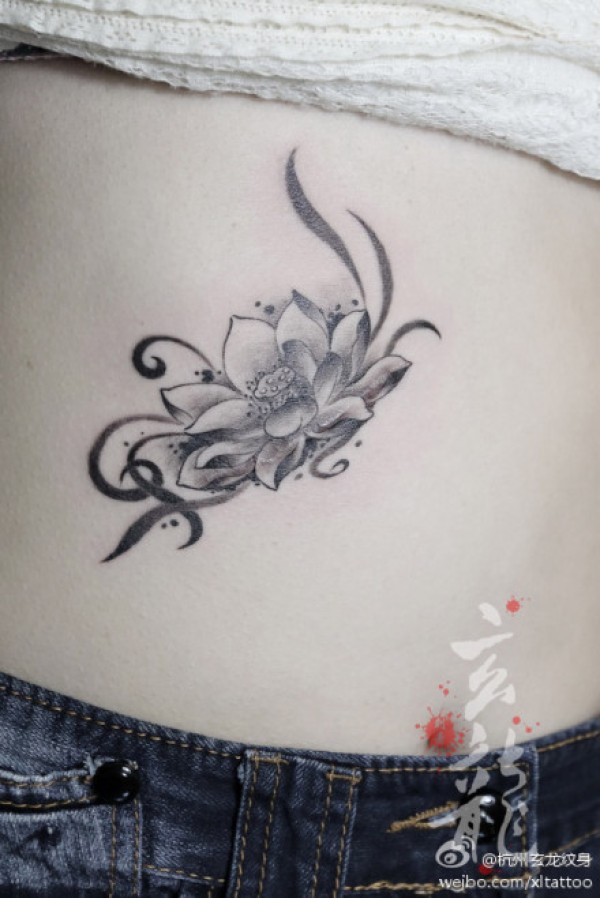 女生腹部时尚唯美的黑白莲花纹身图案_女生纹身图案大全_纹身图吧