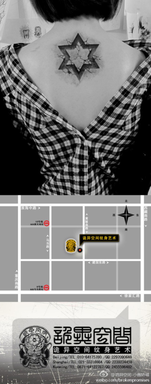 女生后背超酷的石裂烙印六芒星纹身图案_女生纹身图案大全_纹身图吧