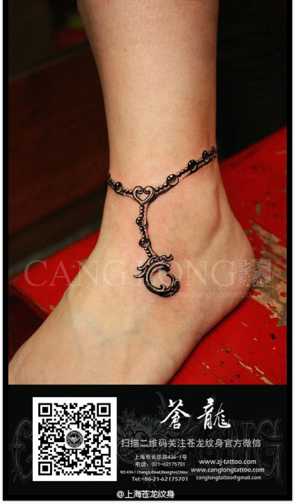 女生脚腕唯美时尚的脚链纹身图案_女生纹身图案大全_纹身图吧