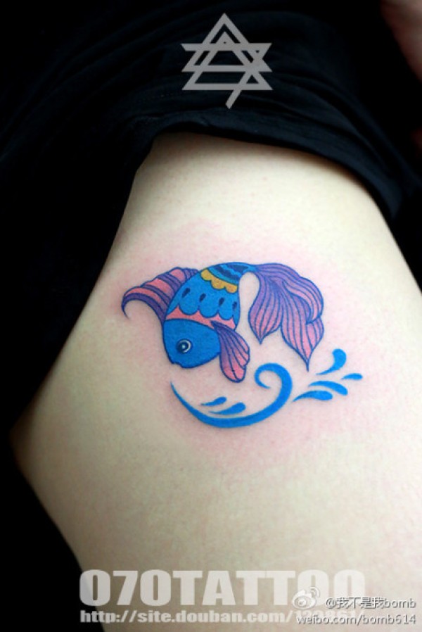 女生腿部小巧时尚的小金鱼纹身图案_女生纹身图案大全_纹身图吧