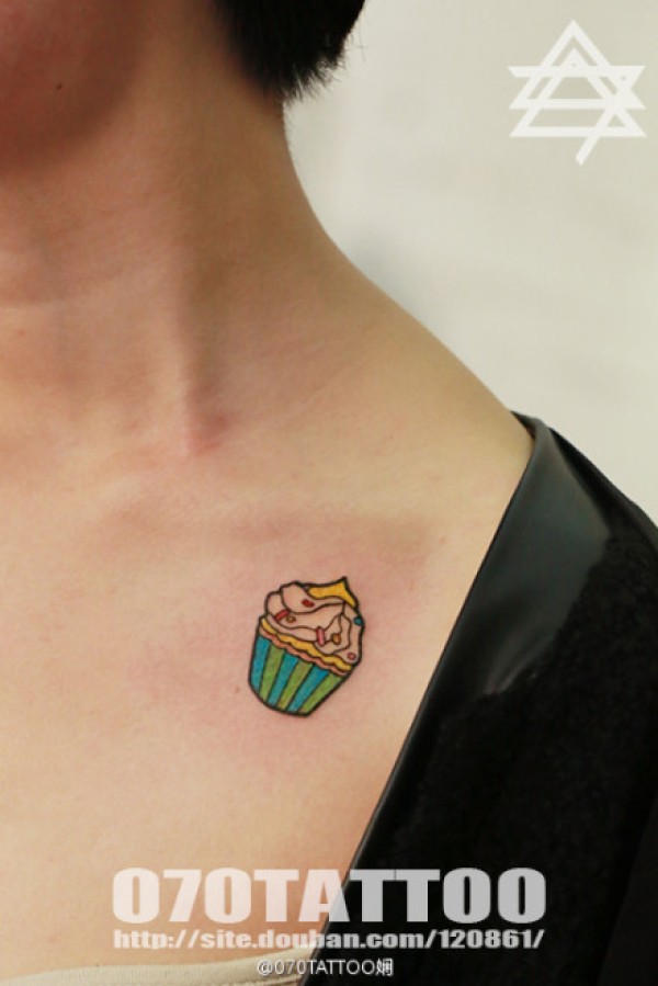 女生锁骨处小巧流行的冰激凌纹身图案_女生纹身图案大全_纹身图吧