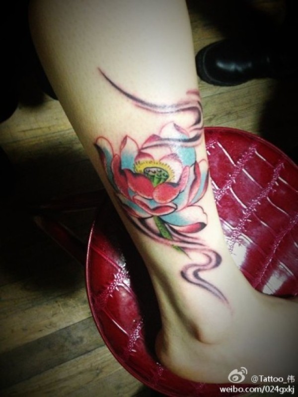 女生腿部唯美时尚的莲花纹身图案_女生纹身图案大全_纹身图吧