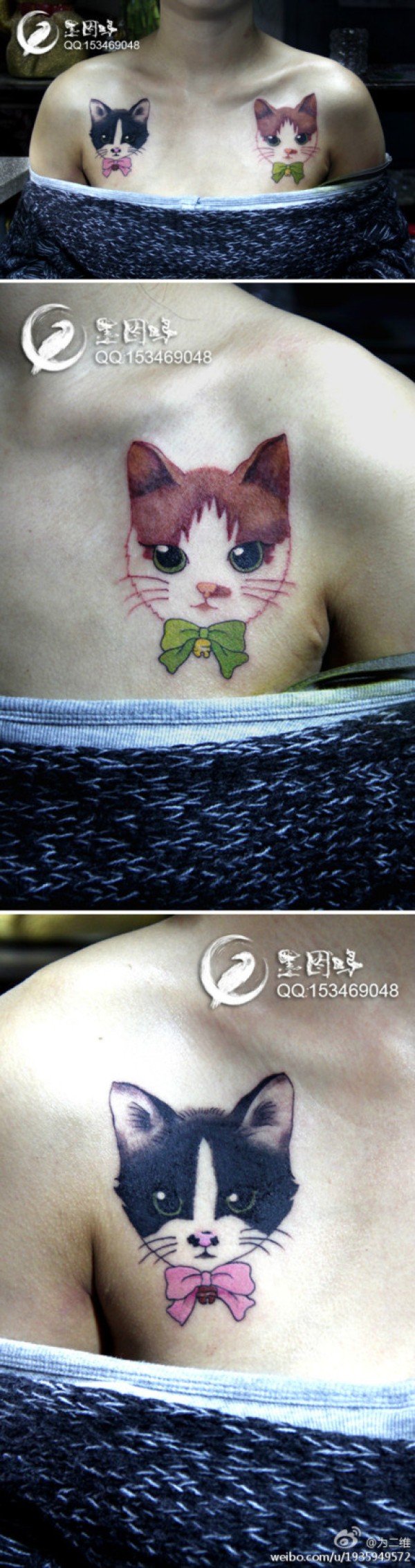 女生肩膀处可爱的猫咪纹身图案_女生纹身图案大全_纹身图吧