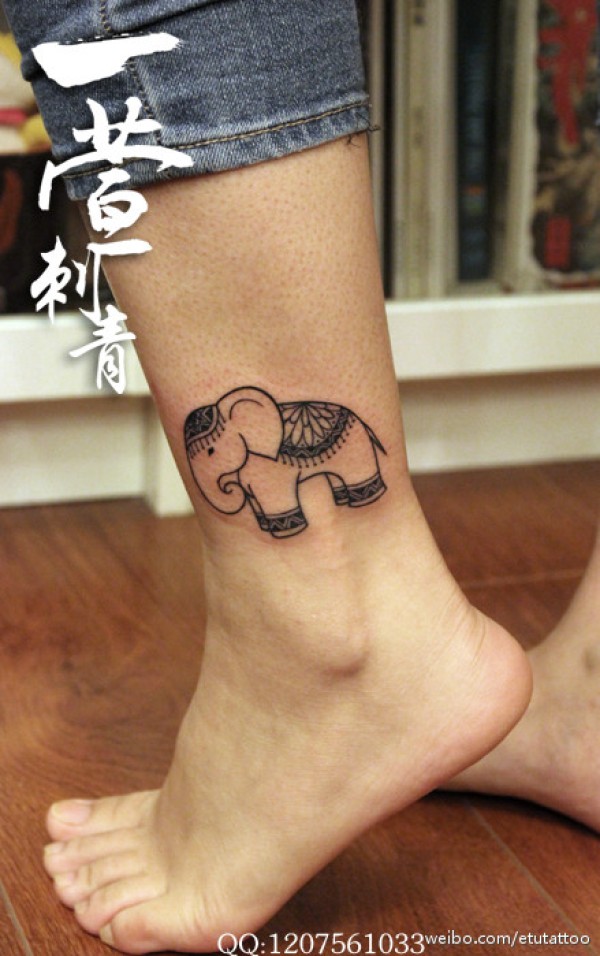 女生小腿可爱时尚的小象纹身图案_女生纹身图案大全_纹身图吧