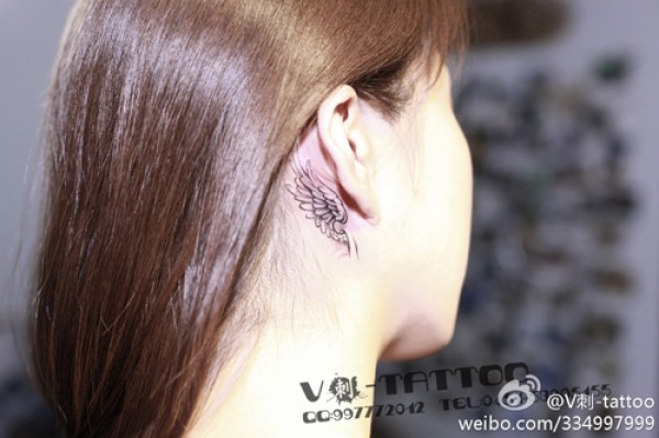 女生耳部唯美时尚的小翅膀纹身图案_女生纹身图案大全_纹身图吧