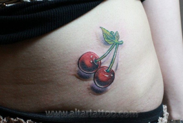 女生腰部时尚流行的小樱桃纹身图案_女生纹身图案大全_纹身图吧
