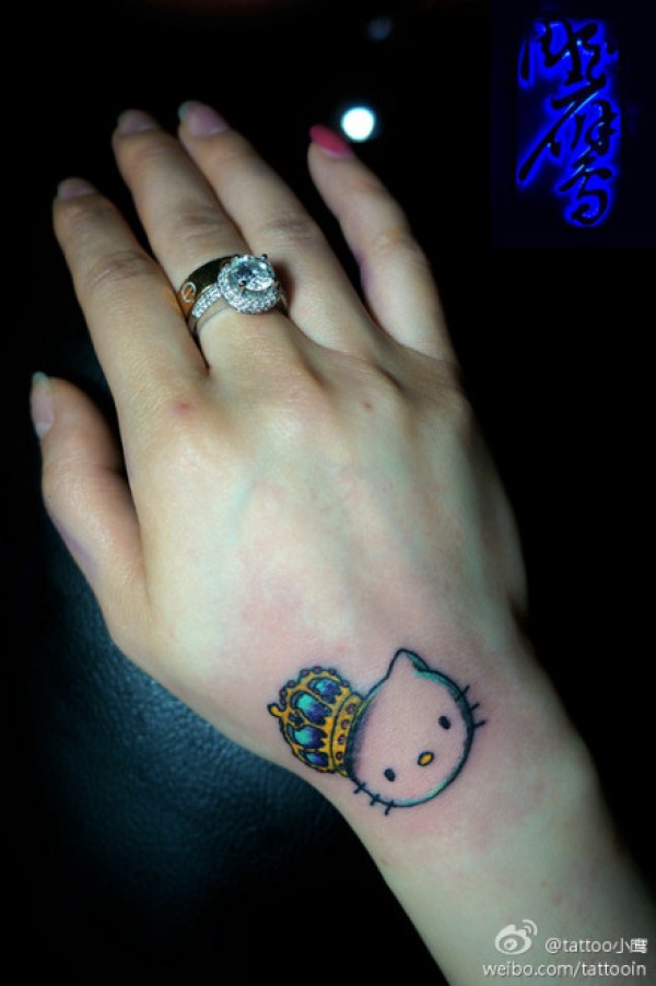 女生手部可爱的皇冠与猫咪纹身图案_女生纹身图案大全_纹身图吧